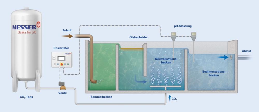 In zahlreichen Industriebetrieben entstehen alkalische Abwässer – sei es durch Reinigungsprozesse, den Einsatz von Laugen in der Produktion oder durch den Kontakt mit Roh- und Reststoffen. Diese Abwässer weisen oft einen stark erhöhten pH-Wert auf, der vor der Einleitung in die Kanalisation oder Kläranlage unbedingt reguliert werden muss, um Schäden und Störungen zu vermeiden. Die Gesetzgebung der Europäischen Union schreibt daher vor, dass relevante Mengen solcher Abwässer vor der Einleitung neutralisiert werden müssen. Messer bietet hierfür eine besonders umweltfreundliche und wirtschaftliche Lösung: die Neutralisation mit Kohlendioxid (CO₂).